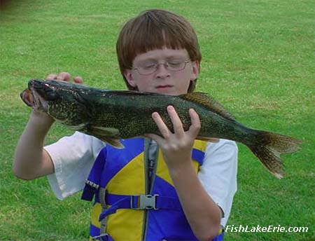 WALLEYE: Eight year old David Stratton of Ivel, Kentucky came in with this 3 pound Walleye. He went out with his father and grandfather on Sea Wolf Charters. The fish was caught three miles west of Walnut Creek in 22 ft of water. The best I have heard of so far is night time fishing. One boat had six the other night. But so far for daytime very, very few if any. PERCH: I have only heard of a couple boats getting any Perch. They were out in 32-42 ft of water between Trout Run and Walnut Creek. The boaters say they Sorry there is no good news about the fish but they just aren't out there the way they usually are yet. FISH KILL: There are a lot of fish laying around the water. They are the Sheepshead. The smaller ones have yellow or orange fins and tail and when the boaters go by them they think they are Perch. They are NOT perch. WARNING: BRIDGE AT DUTCH ROAD AND MANCHESTER ROAD WILL BE Penn Dot is taking out the bridge on Dutch and Manchester Rd. To get here (Walnut Creek) you will have to take Manchester Rd. Dutch Rd will be REPORT DAY: I will start posting my report on Thursdays when the fishing starts to pick up. I know a lot of you like to know what is happening so you know when to |